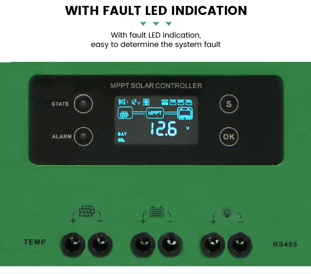 - 12V/24V/48V automatic conversion, the controller automatically adapts to the battery voltage without manual adjustment.