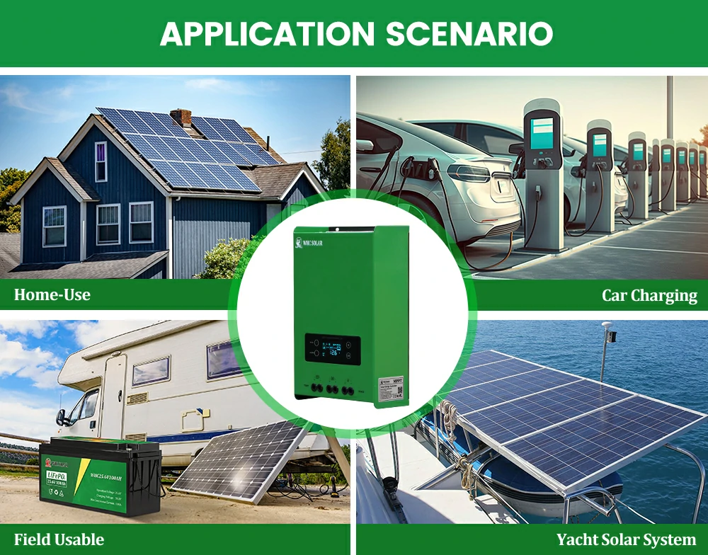 They are used to charge the battery. It will automatically adjust according to the charging status of the battery. Mppt is a new technology. With 100% ultra-high working efficiency and a ten-year service life, WHC mppt 60A charge controller is a high-frequency DC to DC converter that can optimize the matching between solar panels and battery packs.