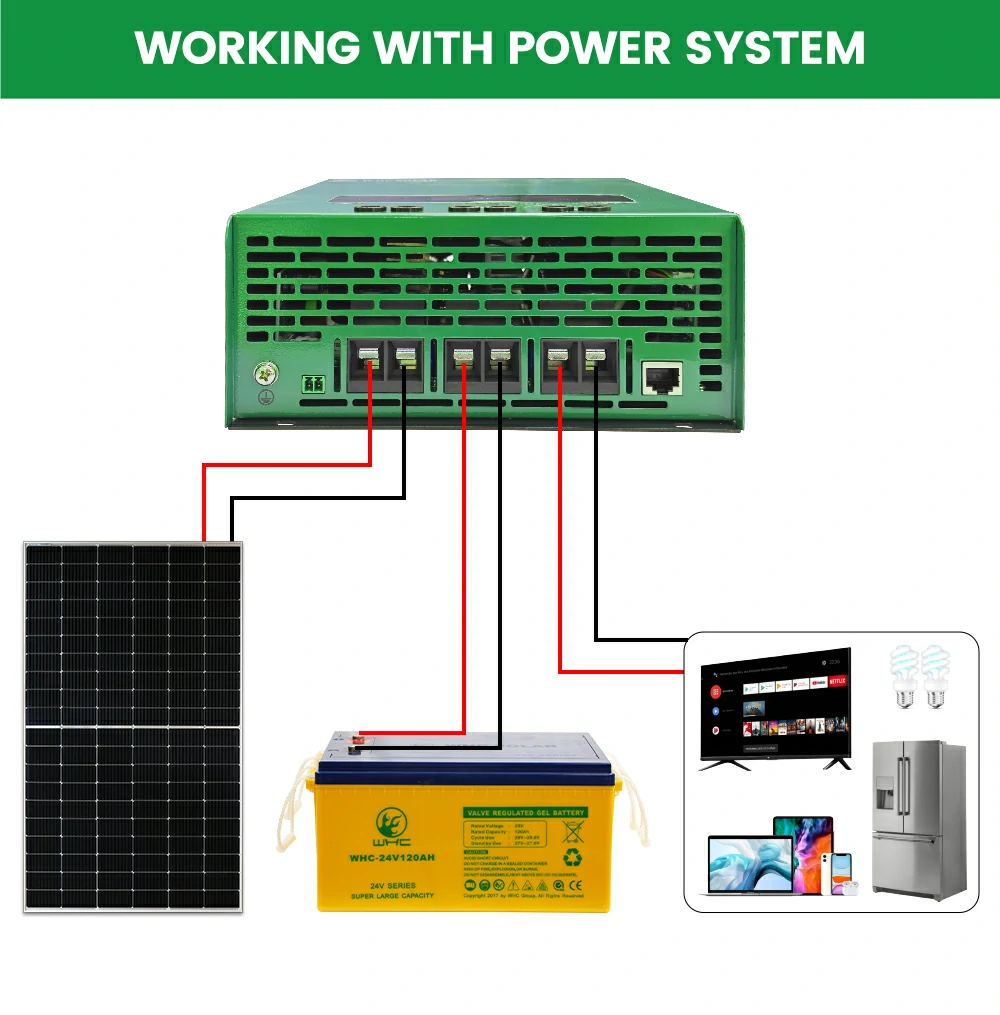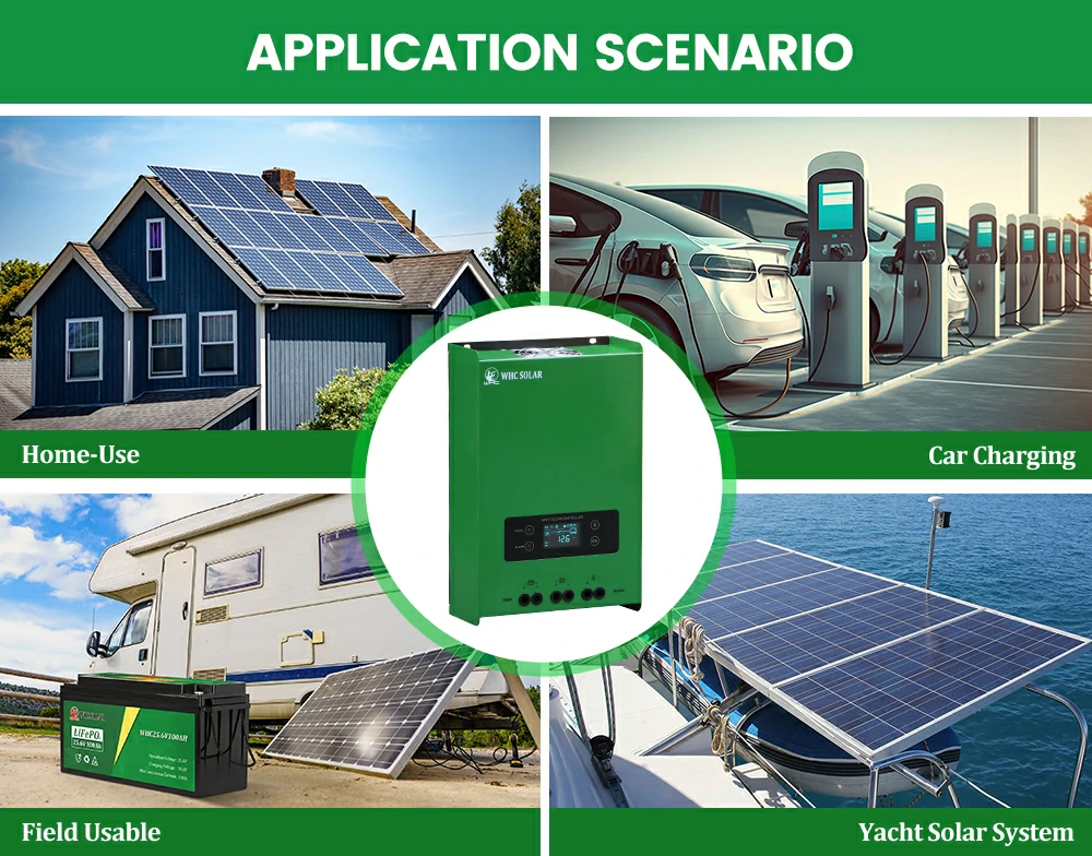 They are used to charge the battery. It will automatically adjust according to the charging status of the battery. Mppt is a new technology. With 100% ultra-high working efficiency and a ten-year service life, WHC mppt 60A charge controller is a high-frequency DC to DC converter that can optimize the matching between solar panels and battery packs.