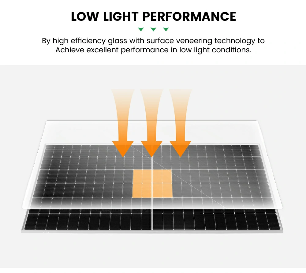 MONO haif-cut single / double glass module, assembled with multi-busbar PERC technique and half-cut structure, which can not only absorb the energy from the front of the module, but also absorb the reflected light and the scattered light from the back, offer the advantages of higher power output, reduce shading effect on the energy generation. enhance the mechanical load bearing capacity as well.